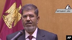اپنی حلف برداری سے ایک روزپہلے انہوں نے قاہرہ کے معروف تحریر چوک میں اپنے ہزاروں حامیوں سے خطاب کیاتھا، جو حکمران فوجی کونسل کے خلاف احتجاج کے لیے وہاں جمع ہوئےتھے۔