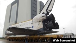 پیر کی صبح ناسا کے باقی ماندہ تین خلائی جہازوں میں شامل آخری خلائی شٹل نے فلوریڈا میں ایک دیوہیکل گاڑی کے ذریعے اپنی آخری آرام گاہ کی جانب سفر کا آغاز کیا۔