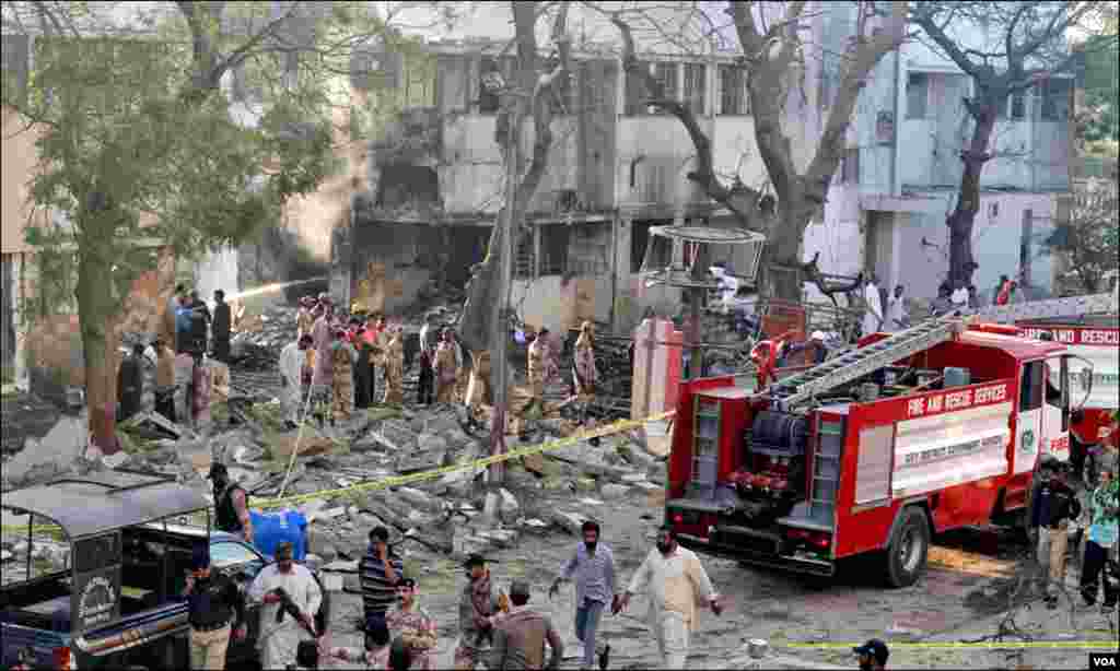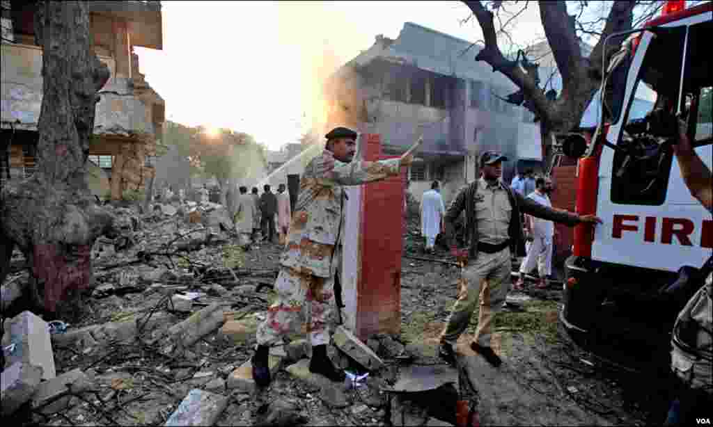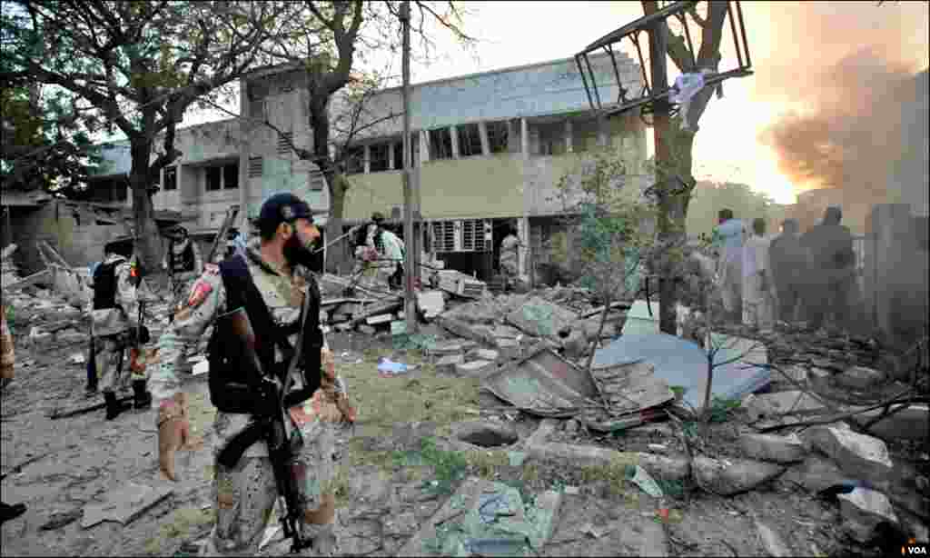 پاکستان کے اقتصادی مرکز کراچی میں جمعرات کی صُبح ’رینجرز‘ ہیڈ کوارٹر پر خودکش بم دھماکے میں کم از کم تین افراد ہلاک اور 20 زخمی ہو گئے۔ پولیس کے مطابق ایک خودکش بمبار نے اپنی گاڑی جس پر 100 کلوگرام دھماکہ خیز مواد تھا، عمارت سے ٹکرانے کی کوشش کی مگرگاڑی ایک درخت سے ٹکرا گئی۔