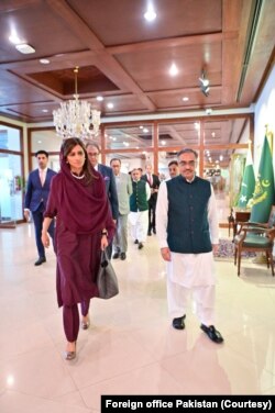 پاکستانی دفترِ خارجہ کے مطابق حنا ربانی کھر منگل کو دفترِ خارجہ پہنچیں تو سیکریٹری خارجہ سہیل محمود سمیت دیگر حکام نے استقبال کیا۔