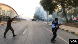 مقامی میڈیا کی رپورٹس کے مطابق ڈی چوک پر تحریکِ انصاف کے کارکنوں نے پولیس پر پتھراؤ کیا جس کے جواب میں پولیس نے شیلنگ کی۔