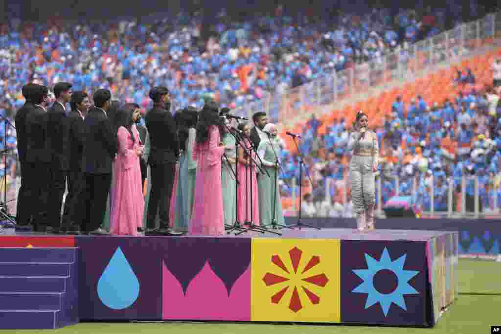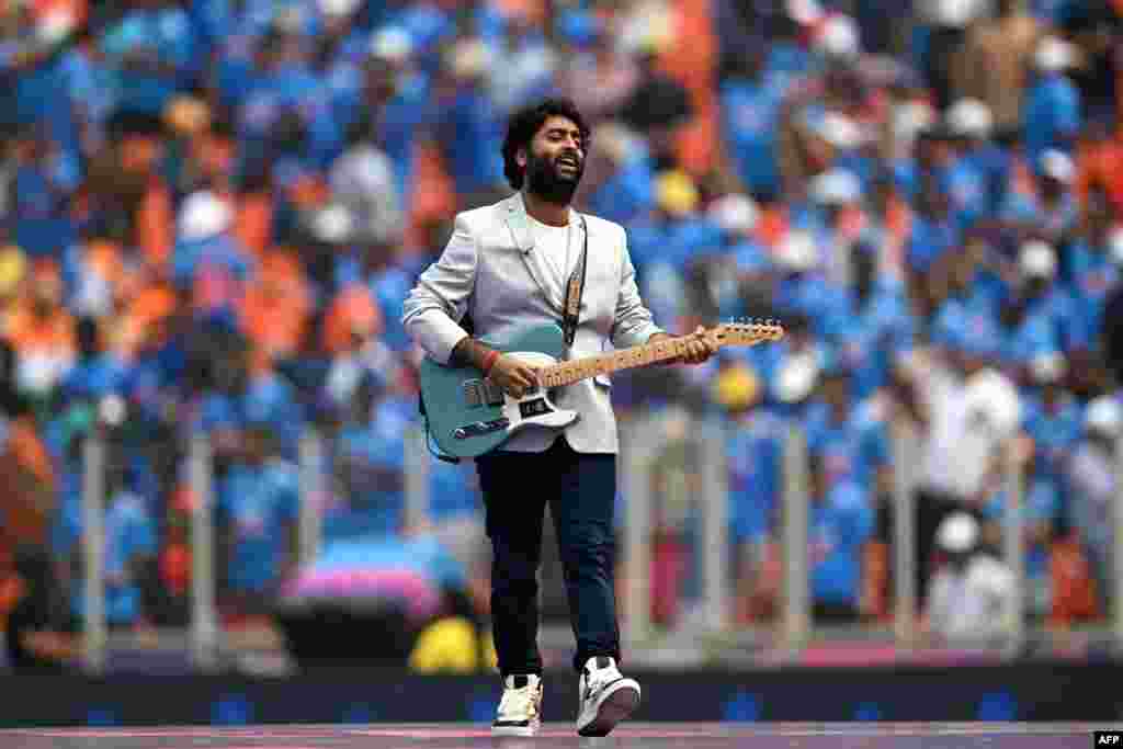 پاکستان اور بھارت کے درمیان ہفتے کو ورلڈ کپ کے ایک اہم میچ سے قبل رنگا رنگ تقریب کا اہتمام کیا گیا۔ احمد آباد کے نریندر مودی اسٹیڈیم میں موجود تماشائی فن کاروں کی پرفارمنس سے محظوظ ہوئے۔ لگ بھگ ایک گھنٹے تک جاری رہنے والی تقریب میں معروف گلوکار اریجیت سنگھ ، سنیدھی چوہان، شنکر مہادیون اور سکھویندر سنگھ نے اپنے فن کا جادو جگایا۔ گراؤنڈ میں بالی وڈ اسٹارز امیتابھ بچن اور رجنی کانت کی موجودگی نے تقریب کو چار چاند لگا دیے۔