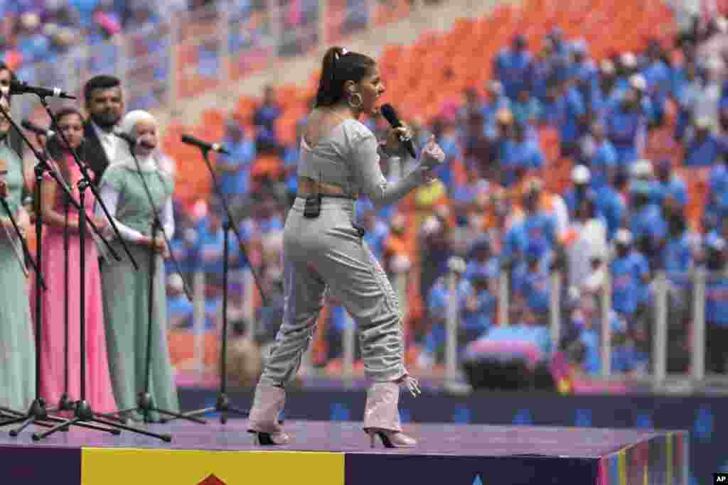 پاکستان اور بھارت کے درمیان ہفتے کو ورلڈ کپ کے ایک اہم میچ سے قبل رنگا رنگ تقریب کا اہتمام کیا گیا۔ احمد آباد کے نریندر مودی اسٹیڈیم میں موجود تماشائی فن کاروں کی پرفارمنس سے محظوظ ہوئے۔ لگ بھگ ایک گھنٹے تک جاری رہنے والی تقریب میں معروف گلوکار اریجیت سنگھ ، سنیدھی چوہان، شنکر مہادیون اور سکھویندر سنگھ نے اپنے فن کا جادو جگایا۔ گراؤنڈ میں بالی وڈ اسٹارز امیتابھ بچن اور رجنی کانت کی موجودگی نے تقریب کو چار چاند لگا دیے۔