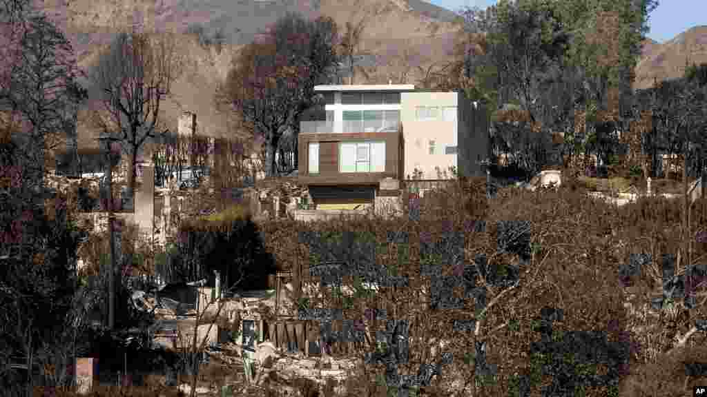 امریکہ کی ریاست کیلی فورنیا کے شہر لاس اینجلس کے مختلف مقامات پر لگنے والی آگ کے سبب جہاں ہزاروں گھر جل کر خاکستر ہو گئے ہیں وہیں کچھ مکان ایسے بھی ہیں جو محفوظ رہے ہیں۔ تصاویر میں دیکھا جا سکتا ہے کہ تباہ شدہ اسٹرکچرز کے درمیان بعض ایسے گھر موجود ہیں جو بالکل درست حالت میں ہیں۔