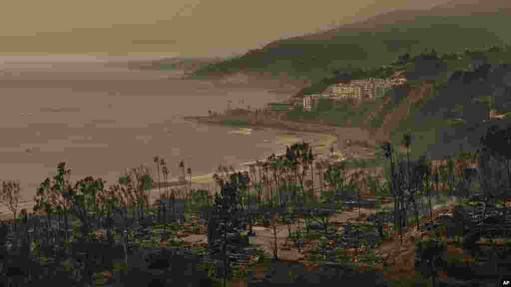 امریکہ کی ریاست کیلی فورنیا کے شہر لاس اینجلس کے مختلف مقامات پر لگنے والی آگ کے سبب جہاں ہزاروں گھر جل کر خاکستر ہو گئے ہیں وہیں کچھ مکان ایسے بھی ہیں جو محفوظ رہے ہیں۔ تصاویر میں دیکھا جا سکتا ہے کہ تباہ شدہ اسٹرکچرز کے درمیان بعض ایسے گھر موجود ہیں جو بالکل درست حالت میں ہیں۔