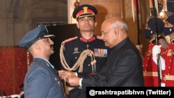 بھارتی دارالحکومت نئی دہلی میں پیر کو راشٹرپتی بھون (ایوانِ صدر) میں ایک تقریب منعقد ہوئی جس میں بھارت کے صدر رام ناتھ کووند نے پائلٹ ابھینندن کو فروری 2019 کو پیش آنے والے واقعے پر 'ویرچکر' ایوارڈ سے نوازا۔