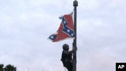 ایک سرگرم کارکن نے ہفتے کو جنوبی کیرولائنا کے اسٹیٹ ہاؤس کے باہر سے کنفیڈریٹ کے پرچم کو اتار دیا، اس سے ایک دن پہلے صدر براک اوباما نے اس کے بارے میں کہا تھا کہ یہ "منظم جبر اور نسلی تسلط کی یاد دلاتا ہے"۔