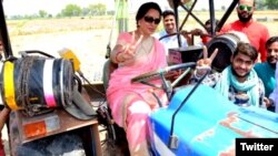 انہوں نے پہلے تو کھیتوں میں جا کر کاشت کاروں کے ساتھ چلچلاتی دھوپ میں درانتی سے گندم کی فصل کاٹی، پھر ایک ٹریکٹر کو خود ہی کھیتوں میں دوڑاتی اور کسان عورتوں کی طرح کام کرتی رہیں۔