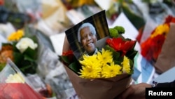 واشنگٹن میں جنوبی افریقہ کے سفارتخانے کے باہر امریکی بڑی تعداد میں پھول رکھ رہے ہیں۔ سفارتخانے کے باہر نیلسن منڈیلا کے مجسمے کے سامنے بھی پھول رکھنے کا سلسلہ جاری ہے۔