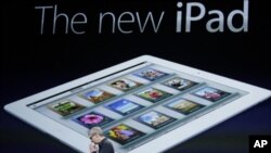 دنیا بھر میں جمعے کے روز اپیل اسٹوروں کےباہر خریداروں کی لمبی قظاریں دکھائیں جو ڈیجٹل ٹیکنالوجی کی اس بڑی کمپنی کے مشہور ٹیلٹ کمپیوٹر آئی پیڈ کا نیا ماڈل خریدنے کے لیے اکھٹے ہوئے تھے۔