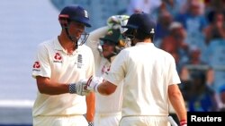 کپتان جو روٹ نے کک کے ساتھ مل کر محتاط انداز میں اننگز کو آگے بڑھایا اور مزید کوئی وکٹ گنوائے بغیر اسکور 192 رنز تک پہنچا دیا۔ اس دوران کک نے اپنی سینچری مکمل کی جو ٹیسٹ کرکٹ میں اُن کی 32 ویں سینچری ہے۔
