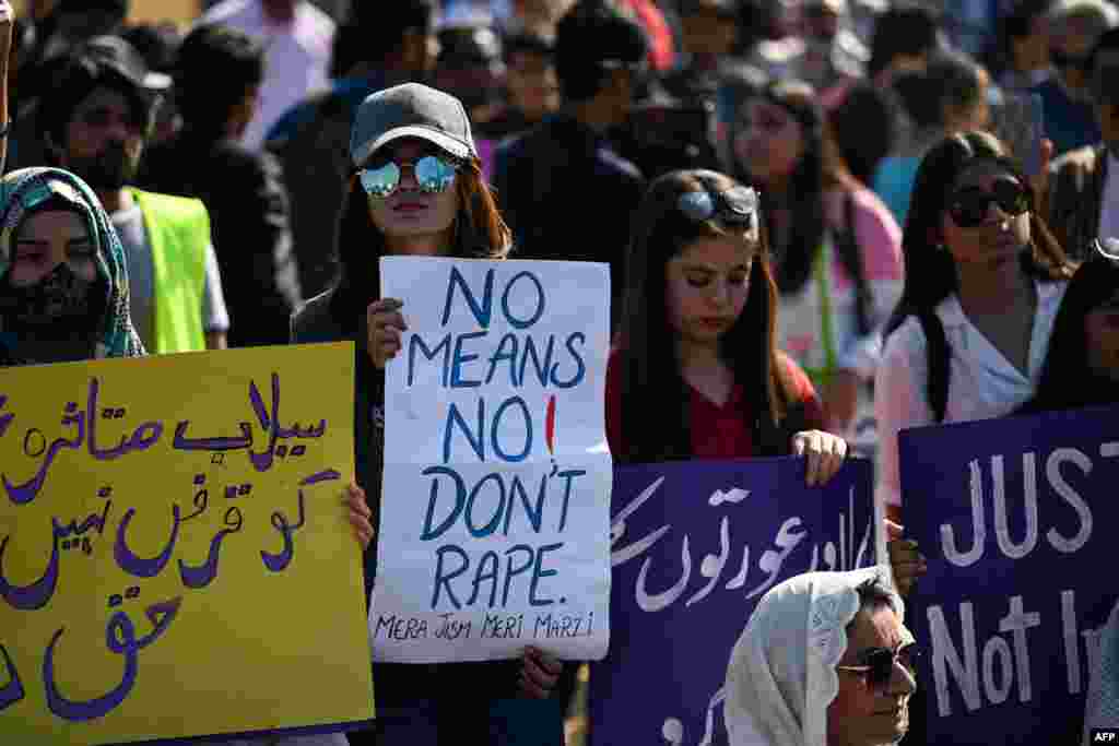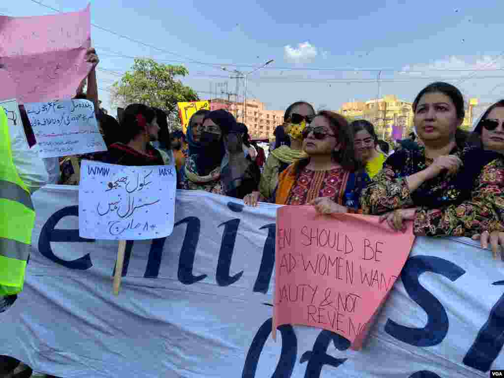 دنیا بھر میں آٹھ مارچ کو عالمی یومِ خواتین منایا جاتا ہے۔ پاکستان میں بھی اس دن کی مناسبت سے مختلف شہروں میں ریلیاں نکالی جاتی ہیں اور عورت مارچ کا انعقاد ہوتا ہے۔ اس سال اسلام آباد اور لاہور میں ہونے والے عورت مارچ میں شرکا نے کس طرح کے بینرز اور پوسٹرز اٹھا رکھے تھے؟ دیکھیے اس پکچر گیلری میں۔