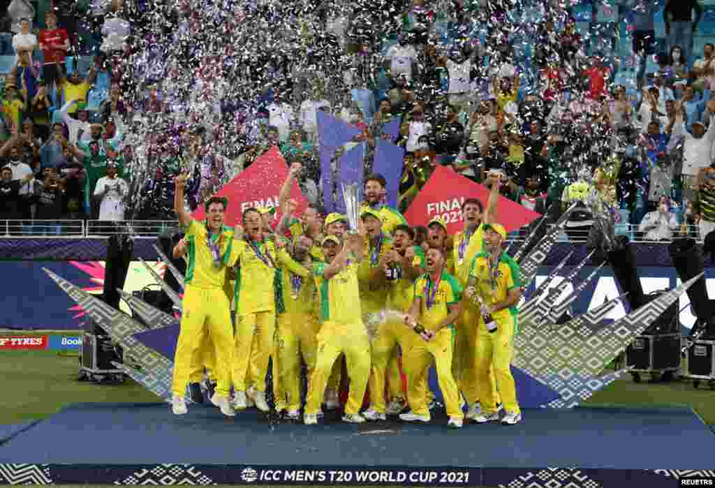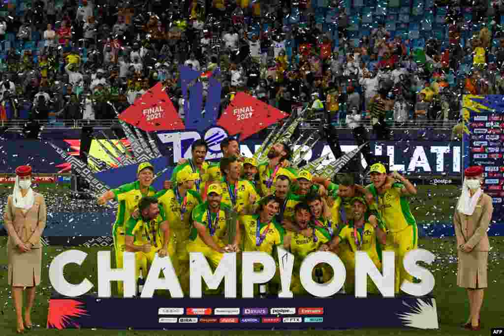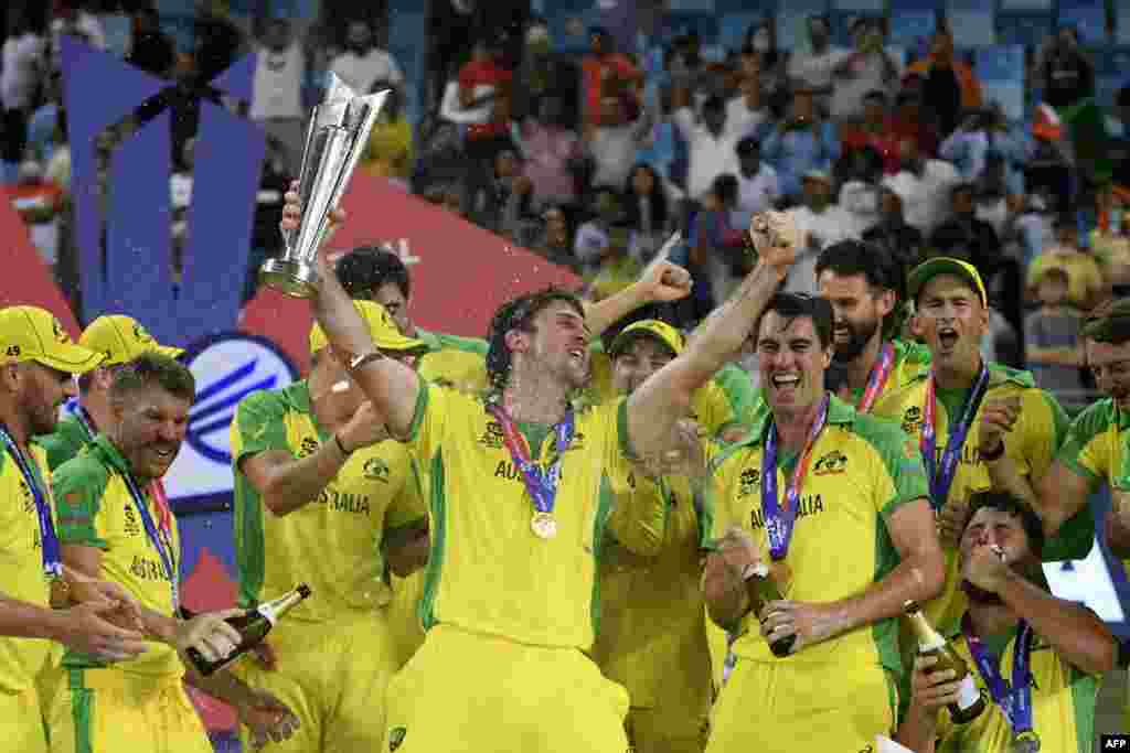 ٹی ٹوئنٹی کرکٹ ورلڈ کپ کے فائنل میں آسٹریلیا نے نیوزی لینڈ کو آٹھ وکٹوں سے شکست دے کر ٹائٹل اپنے نام کر لیا ہے۔ آسٹریلوی ٹیم نے پہلی مرتبہ ٹی ٹوئنٹی ورلڈ کپ جیتا ہے۔ فائنل میچ میں آسٹریلیا نے نیوزی لینڈ کے 173 رنز کے ہدف کو باآسانی دو وکٹوں پر حاصل کرلیا۔ آسٹریلوی کھلاڑی مچل مارش کو میچ جب کہ ڈیوڈ وارنر کو ٹورنامنٹ کا بہترین کھلاڑی قرار دیا گیا۔ فائنل میچ اور آسٹریلوی ٹیم کی فتح کا جشن دیکھیے اس پکچر گیلری میں۔
