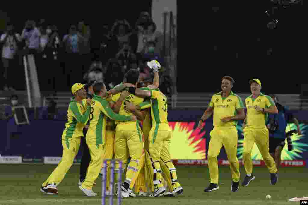 ٹی ٹوئنٹی کرکٹ ورلڈ کپ کے فائنل میں آسٹریلیا نے نیوزی لینڈ کو آٹھ وکٹوں سے شکست دے کر ٹائٹل اپنے نام کر لیا ہے۔ آسٹریلوی ٹیم نے پہلی مرتبہ ٹی ٹوئنٹی ورلڈ کپ جیتا ہے۔ فائنل میچ میں آسٹریلیا نے نیوزی لینڈ کے 173 رنز کے ہدف کو باآسانی دو وکٹوں پر حاصل کرلیا۔ آسٹریلوی کھلاڑی مچل مارش کو میچ جب کہ ڈیوڈ وارنر کو ٹورنامنٹ کا بہترین کھلاڑی قرار دیا گیا۔ فائنل میچ اور آسٹریلوی ٹیم کی فتح کا جشن دیکھیے اس پکچر گیلری میں۔