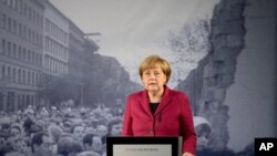 ’دیوارِ برلن‘ کے انہدام کے 25 برس مکمل ہونے پر، جرمن لوگوں نے خوشیاں منائیں، جس موقع پر چانسلر آنگلہ مرخیل نے اُن افراد کے حوصلے کو سراہا جنھوں نے اِسے گرانے کے سلسلے میں کردار ادا کیا۔