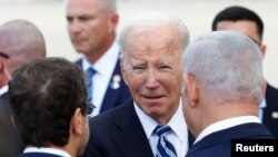 صدر بائیڈن بدھ کو تل ابیب کے بن گورین ایئرپورٹ پہنچے جہاں اسرائیلی وزیرِ اعظم بن یامین نیتن یاہو نے گرمجوشی سے ان کا استقبال کیا۔