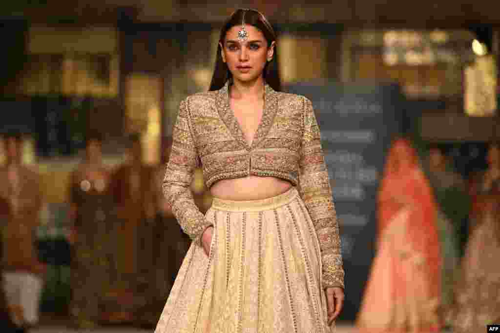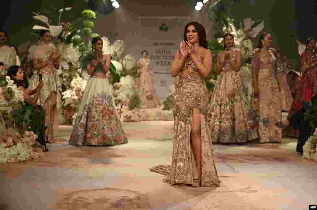 بھارت کے دارالحکومت نئی دہلی کے تاج پیلس میں رنگا رنگ (India Couture Week 2023) جاری ہے جس میں معروف ڈیزائنرز اپنے اپنے ملبوسات پیش کر رہے ہیں۔ فیشن شو میں بالی وڈ اسٹارز بطور 'شو اسٹاپر' ریمپ کی رونقیں بڑھا رہے ہیں۔ ریمپ پر اب تک اداکارہ کیارا اڈوانی، ادتیا راؤ، بھومی پڈنیکار سمیت جھانوی کپور واک کر چکی ہیں۔ 25 جولائی سے شروع ہونے والا یہ ایونٹ 11 اگست تک جاری رہے گا جس میں تقریباً 16 ملکوں سے ڈیزائنرز اپنے ملبوسات کی نمائش کر رہے ہیں۔