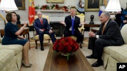 ڈیموکریٹ پارٹی کی قیادت اور امریکی صدر ڈونالڈ ٹرمپ کے درمیان منگل کے روز اوول آفس میں لفظی جھڑپ ہوئی، جس دوران صدر نے دھمکی دی کہ اگر قانون ساز میکسیکو کی سرحد کے ساتھ ساتھ دیوار کے تعمیر کے وعدے کے لیے درکار رقوم کی فراہمی نہیں کرتے تو حکومت کا ’شٹ ڈاؤن‘ ہوگا۔ اُنھوں نے کہا کہ ’’قومی ہنگامی صورت حال‘‘ کا یہی جواب ہوگا۔