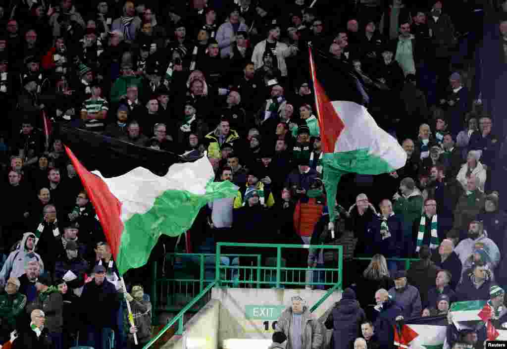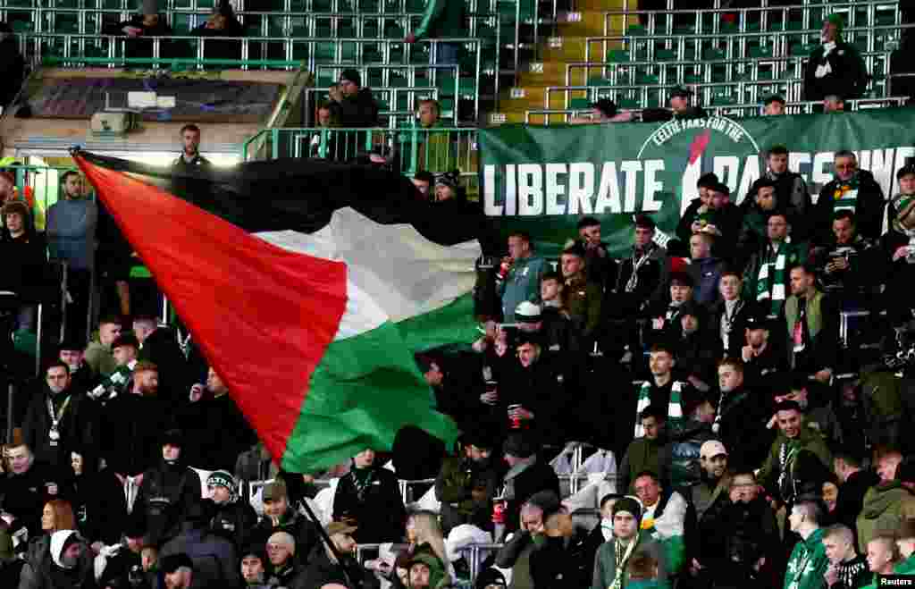 اسکاٹش فٹ بال کلب سیلٹک کے مداحوں کے ایک گروپ 'گرین بریگیڈ' نے بدھ کی شب یوئیفا چیمپئنز لیگ کے ایک میچ کے دوران اسٹیڈیم میں فلسطینی جھنڈے لہرا دیے۔ سیلٹک فٹ بال کلب نے میچ سے قبل ہی مداحوں، کھلاڑیوں اور کوچنگ اسٹاف کو ہدایت کی تھی کہ وہ اسرائیل حماس تنازع کے متاثرین کے ساتھ اظہارِ یکجہتی کے لیے بازو پر سیاہ پٹی باندھ سکتے ہیں۔ بدھ کی شب سیلٹک کلب اور ہسپانوی کلب اٹلیٹیکو میڈرڈ کے درمیان میچ شروع ہوا تو 'گرین بریگیڈ' نے فلسطینیوں سے اظہارِ یکجہتی کے طور پر فلسطینی پرچم لہرائے۔ سیلٹک فٹ بال کلب نے میچ سے قبل واضح کیا تھا کہ کسی بھی قسم کے بینرز اور جھنڈے اسٹیڈیم لانے کی اجازت نہیں ہے۔ گرین بریگیڈ گروپ کی جانب سے حالیہ میچز میں فلسطینی جھنڈے لہرانے کی وجہ سے کلب نے پہلے ہی ملک سے باہر میچز میں شرکت پر پابندی عائد کر رکھی ہے۔