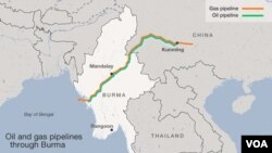 یہ پائپ لائنیں، جن کی منظوری برما کی سابق فوجی حکومت نے دی تھی، جن پر کئی لوگ نکتہ چینی کرتے رہے ہیں، جِن کا کہنا ہے کہ برما توانائی کی اپنی داخلی ضروریات اور زمین پر قبضہ جمانے کے معاملات کو مد نظر رکھنے میں ناکام رہا ہے۔