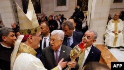 مغربی کنارے میں واقع شہر بیت اللحم میں سینکڑوں افراد حضرت عیسیٰ کی پیدائش سے منسوب چرچ کے باہر جمع ہوئے جب کہ فلسطینی صدر محمود عباس نے بھی اس میں شرکت کی۔ (فائل فوٹو)