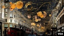لندن کے خریداری کے مراکز، بڑے بڑے شاپنگ مالز اور دوکانیں کرسمس کے موقع پر سفید اور سنہری برقی قمقموں کے ساتھ حسین نظارہ پیش کر رہی ہیں، جب کہ روشنیوں کے اس تہوار پر گھروں کی تزئین وآرائش بھی دیکھنے سے تعلق رکھتی ہے۔