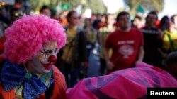 امریکہ کے شہر نیو یارک میں مظاہرین نے وال اسٹریٹ پر لگے بیل کے مجسمے اور اپنے کپڑوں کو جعلی خون سے رنگ دیا اور پھر سڑکوں پر لیٹ کر انوکھا مظاہرہ کیا۔