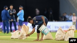 سنسیئر دیبیا نے تو گراؤنڈ سکھانے والے اسٹاف کی ایک ایسی تصویر پوسٹ کی جس میں انہیں کہیں ہیئر ڈرائر سے تو کہیں گتے سے گیلے گراؤنڈ کو سکھانے کی کوشش کرتے دیکھا جاسکتا ہے۔