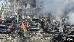 شام کے عہدے داروں کا کہناہے کہ بدھ کے روز دمشق میں واقع ایک فوجی عمارت پر دو بم حملوں کے نتیجے میں چار سیکیورٹی گارڈ ہلاک ہوگئے اور عمارت کے کئی حصوں میں آگ بھڑک اٹھی۔