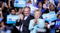 امریکہ کی ڈیموکریٹک جماعت کی صدارتی امیدوار ہلری کلنٹن اور ورجینیا سے سینیٹر ٹم کین پہلی مرتبہ ہفتہ کو ایک ساتھ انتخابی مہم میں شریک ہوئے جس میں انھوں نے امید اور روشن مستقبل کا پیغام دیا۔