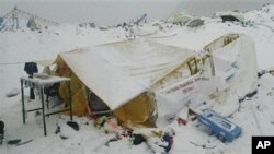 اس روز بھی یہاں نائلون کےخمیوں میں درجنوں مہم جو بلندی پر جانے سے پہلے کی ضروری تربیت حاصل کر رہے تھے جب شدید زلزلے کے جھٹکوں کے بعد برفانی تودے کی زد میں آنے سے بیس کیمپ کا کچھ حصہ برف کے نیچے دفن ہو گیا۔