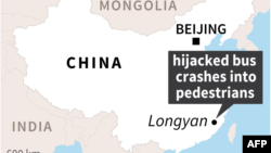 چین کے صوبے فوجیان میں ایک شخص نے مسافر بس اغوا کر کے فٹ پاتھ پر کھڑے راہ گیروں پر چڑھا دی جس سے آٹھ افراد ہلاک اور 22 زخمی ہو گئے ہیں۔
