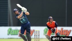 جمعہ کو نیدرلینڈز میں کھیلے گئے میچ میں انگلش ٹیم نے بیٹنگ شروع کی تو ایک رنز کے اسکور پر اوپنر جیسن رائے آؤٹ ہوگئے جس کے بعد انگلش بیٹرز نے کسی بالر کو نہ بخشا اور گراؤنڈ کے چاروں اطراف اسٹروکس کھیلے۔