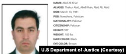 امریکی محکمۂ انصاف کے مطابق عابد علی پاکستان اور افغانستان سے لوگوں کو بھاری رقوم کے عوض غیر قانونی طور امریکہ پہنچانے میں ملوث رہے ہیں۔