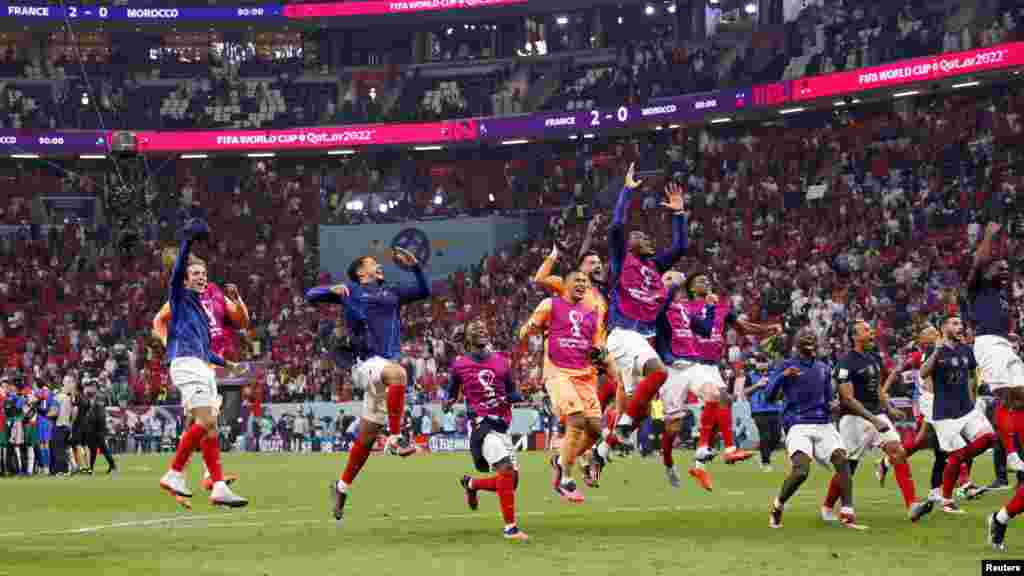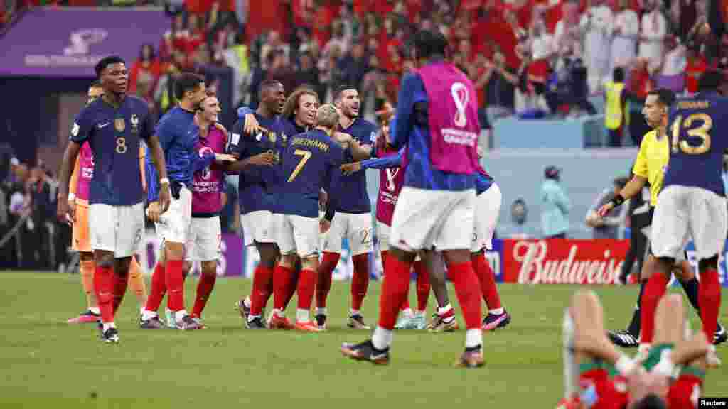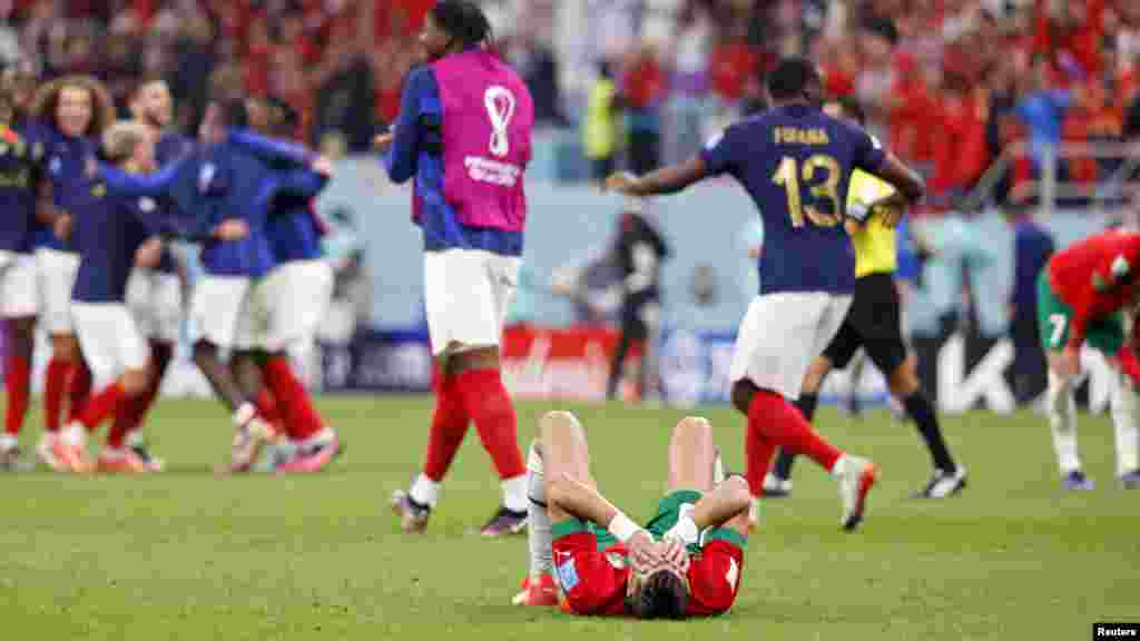 فیفا ورلڈکپ کا دوسرا سیمی فائنل بدھ اور جمعرات کی درمیانی شب فرانس اور مراکش کے درمیان ہوا جس میں فرانس نے دو صفر سے کامیابی کے ساتھ فائنل تک رسائی حاصل کی۔ فرانس کی کامیابی پر جہاں اس کے کھلاڑی اور مداح جشن مناتے نظر آئے وہیں پہلی بار سیمی فائنل میں پہنچنے والی مراکش کی ٹیم کے کھلاڑی افسردہ تو نظر آئے لیکن انہوں نے گراؤنڈ میں ایک بار پھر سجدہ کیا جو ان کی جانب سے تشکر کا اظہار تھا۔ قطر میں جاری فٹ بال ورلڈ کپ کے فائنل میں اتوار کو فرانس کا مقابلہ ارجنٹائن سے ہوگا۔