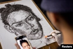 خبر رساں ادارے 'رائٹرز' کے مطابق جیسٹونی گراسیا اپنے تراشے ہوئے بالوں کو جمع کرنے کے بعد ایک باریک برش اور بالوں کو چپکانے کے لیے گوند کا استعمال کرتے ہوئے فن پارے بناتے ہیں۔