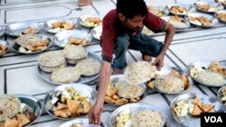 شام کے اوقات میں افطاری کا سب سے بڑا اجتماع میمن مسجد بولٹن مارکیٹ پر دیکھنے کو ملا۔ مسجد کے وسیع و عریض صحن میں سینکڑوں افراد نے ایک ساتھ ایک ہی جگہ افطار کیا۔ ناظم آباد سے میمن مسجد آکر افطار کرنے والے ایک روزیدار نے وی او اے کو بتایا کہ ’یہ سماں دیدنی ہوتا ہے۔۔سینکڑوں لوگ بیک وقت صحن میں اور روایتی انداز میں روزہ کھولتے ہیں۔ مجھے تو یہ منظر دیکھ کر مسجد نبوی کی یاد تازہ ہوجاتی ہے اسی لئے میں رمضان میں ایک آدھ مرتبہ یہیں آکر افطار کرتا ہوں۔‘