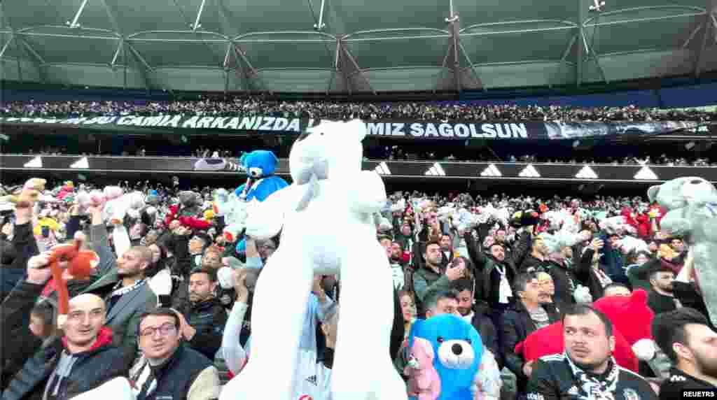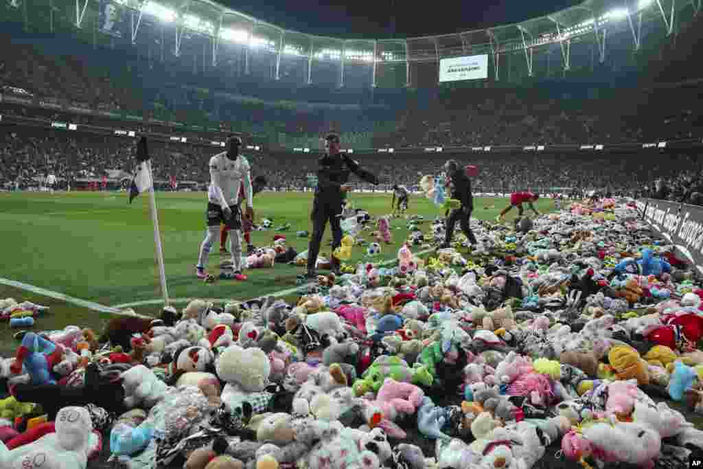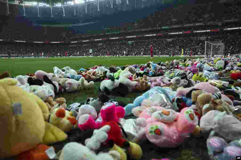 ترکیہ کے شہر استنبول میں فٹ بال میچ کے بعد شائقین نے اسٹیڈیم میں کھلونوں کا ڈھیر لگا دیا۔ ووڈا فون پارک میں اتوار کو فٹ بال شائقین نے زلزلے سے متاثرہ بچوں سے اظہارِ یکجہتی کے لیے بڑی تعداد میں کھلونے عطیہ کیے۔ اس میچ میں چار منٹ 17 سیکنڈ کی خاموشی بھی اختیار کی گئی۔ ترکی میں چھ فروری کو رات چار بج کر 17 منٹ پر تباہ کن زلزلہ آیا تھا جس کے نتیجے میں 44 ہزار سے زائد افراد ہلاک ہوئے تھے۔ کئی ایسے بچے ملبے سے زندہ نکالے گئے جن کے خاندان مر چکے ہیں جب کہ بڑی تعداد میں بچوں کی اموات بھی ہوئی ہیں۔
