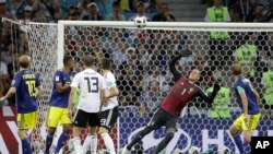 روس میں جاری 'فیفا' ورلڈ کپ فٹ بال کے اہم ترین میچ میں دلچسپ اور سنسنی خیز مقابلے کے بعد دفاعی چیمپئن جرمنی نے سوئیڈن کو 1-2 سے شکست دے دی۔