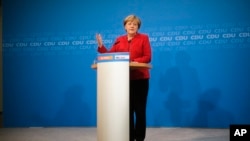 مرکل نے اخباری نمائندوں کو بتایا کہ اس بات کے سرکاری اعلان سے قبل، وہ کرسچین ڈیموکریٹس (سی ڈی یو) کے اعلیٰ سطحی ارکان سے ملاقات کر چکی ہیں۔