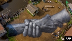 جنوب مشرقی بینن میں واقع جھیل نوکیو کے وسط میں ایک جزیرے کے ارد گرد لکڑی کی سیکڑوں جھونپڑیاں ہیں۔ ان کے درمیان بہت بڑی پینٹگ تیار کی گئی ہے جس میں دو ہاتھ نظر آ رہے ہیں۔ ایسا محسوس ہو رہا ہے کہ دو افراد مضبوطی سے ایک دوسرے کا ہاتھ تھامے ہوئے ہیں۔