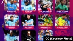روہت شرما، جیسن رائے، جو روٹ، کین ولیم سن، بین اسٹوکس، شکیب الحسن، الیکس کیری (وکٹ کیپر)، مچل اسٹارک، جوفرا آرچر، لوکی فرگوسن اور جسپرت بمراہ شامل ہیں۔