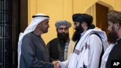 متحدہ عرب امارات کے صدر شیخ محمد بن زاید النہیان اور افغانستان کی طالبان حکومت کے وزیرِ داخلہ ملا سراج الدین حقانی کے درمیان ابوظہبی میں ملاقات ہوئی ہے۔ اس ملاقات کی تفصیلات تو سامنے نہیں آئیں تاہم تجزیہ کار اسے اہم قرار دے رہے ہیں۔