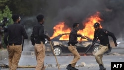 خبر رساں ادارے 'رائٹرز' کے مطابق پنجاب پولیس نے بتایا ہے کہ مشتعل ہجوم نے پولیس کی 25 گاڑیوں اور 14 سرکاری عمارتوں کو نذر آتش کیا ہے۔