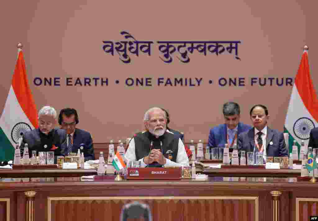 بھارت کی میزبانی میں دنیا کے مضبوط معاشی ملکوں کی تنظیم جی20 کا دو روزہ اجلاس ہفتے سے نئی دہلی میں شروع ہو گیا ہے۔ امریکہ کے صدر جو بائیڈن، برطانیہ کے وزیرِ اعظم رشی سونک، ترکیہ کے صدر رجب طیب ایردوان کے علاوہ مصر، متحدہ عرب امارات، جاپان، آسٹریلیا، انڈونیشیا اور جنوبی افریقہ سمیت کئی ممالک کے سربراہان، یورپی یونین کے اعلیٰ ذمہ داران اور متعدد بین الاقوامی تنظیموں کے صدور دہلی میں موجود ہیں۔ اجلاس کے پہلے روز عالمی رہنماؤں کا فوٹو سیشن ہوا جس کے بعد اجلاس کے پہلے سیشن کا باقاعدہ آغاز 'ون ارتھ' کے موضوع سے ہوا۔ عالمی رہنماؤں نے صاف توانائی اور کاربن گیسوں کے صفر اخراج کے ہدف کو جلد حاصل کرنے پر گفتگو بھی کی۔ بھارتی صدر دروپدی مرمو کی جانب سے مہمانوں کے لیے عشائیہ کا اہتمام کیا گیا ہے۔