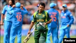 اس دوران پاکستان تمام کوششوں کے باوجود بھارت کے صرف2 کھلاڑی ہی آوٴٹ کرسکا۔ آوٴٹ ہونے والے پہلے کھلاڑی تھے آر جی شرما جو سعید اجمل کی گیند پر مصباح الحق کے ہاتھوں کیچ ہوئے ۔ انہوں نے اٹھارہ رن بنائے۔
