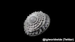 قدرتی ہیروں سے جڑی اس انگوٹھی کا وزن 165 گرام یا پانچ اعشاریہ آٹھ اونس سے کچھ زیادہ ہے۔