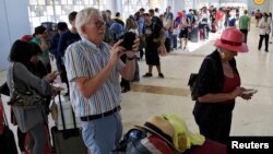 پیر کے روز سیاح چھوٹے ساحلوں پر قطار باندھے کھڑے رہے۔ اُنھیں کشتیوں کا انتظار تھا تاکہ اُنھیں لمبوک کے بڑے جزیرے کی جانب منتقل کیا جاسکے۔