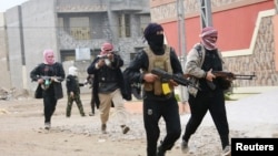 جنگجوؤں نے دو شہروں پر قبضہ کر رکھا ہے۔ عراق میں عہدیداروں کا کہنا ہے کہ سرکاری فورسز نے اتوار کو رمدی کے علاقے میں فضائی حملے بھی کیے۔