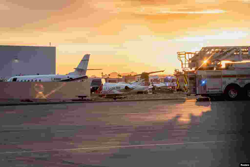 امریکہ کی ریاست ایریزونا کے اسکاٹسڈیل ایئرپورٹ پر پیر کو لینڈنگ کے دوران دو پرائیوٹ جیٹس میں ٹکر سے ایک شخص ہلاک اور متعدد زخمی ہوئے ہیں۔ حکام کے مطابق حادثہ اس وقت پیش آیا جب لینڈنگ کے دوران چھوٹا طیارہ رن وے اتر گیا اور پارکنگ میں کھڑے ایک اور پرائیوٹ جہاز سے ٹکرا گیا۔ حکام کے مطابق لینڈنگ کرنے والے جہاز میں دو پائلٹوں سمیت چار افراد سوار تھے جب کہ پارک طیارے میں ایک شخص موجود تھا۔ رپورٹس کے مطابق لینڈنگ کرنے والا طیارہ راک بینڈ ’ماٹلی کرو‘ کے رکن وینس نیل کا تھا۔ البتہ وہ اس میں سوار نہیں تھے۔ حکام نے رن وے کو بند کر دیا ہے اور حادثے کی تحقیقات شروع کر دی ہیں۔